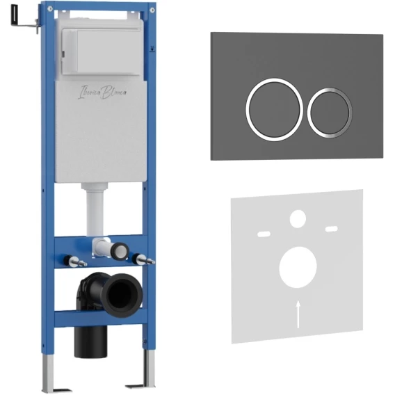 Инсталляция для унитаза Iberica Blanca Silencio Mini Esti-O IB.001M.827 с кнопкой смыва, серый матовый/хром/серый матовый
