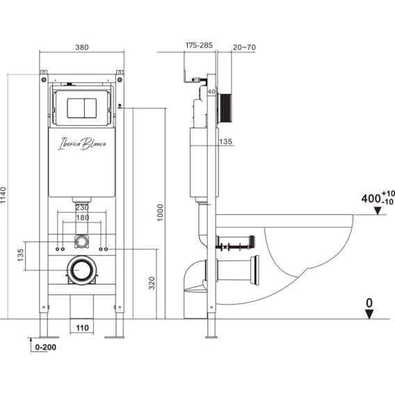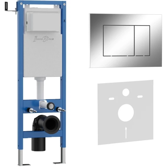 Инсталляция для унитаза Iberica Blanca Silencio Mini Esti-S IB.001M.852 с кнопкой смыва, хром