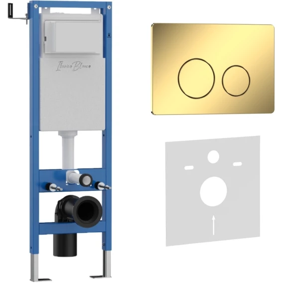 Инсталляция для унитаза Iberica Blanca Silencio Mini Inox-O IB.001M.816 с кнопкой смыва, золотой