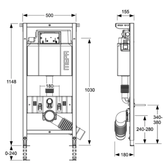 Система инсталляции для унитаза MEPA VariVIT A31 514804Инсталляция снабжена регулируемыми по высоте крепежными болтами, которые позволяют изменять положение унитаза относительно пола, даже после чистовой отделки, в диапазоне 340 - 380 ммСтроительная высота системы — 1200 ммДля монтажа в капитальную стену, с возможностью установки в гипсокартонную перегородку или фальш-стену с облицовкой гипсокартоном или гипсоволокном.