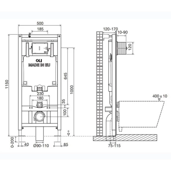 Инсталляция для унитаза OLI 80 Globe 300572mGB00 с кнопкой смыва, хром