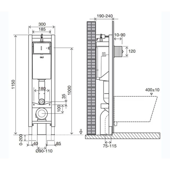 • Совместима с моделями подвесных унитазов с расстоянием между креплениями 180 мм;