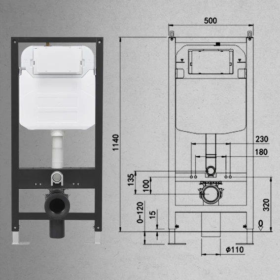 Инсталляция для унитаза Oliveeka M-6601A с кнопкой смыва, белый