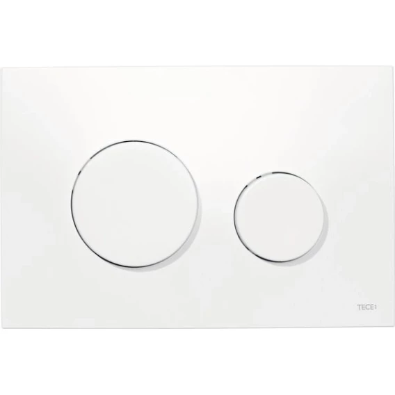Пластиковая панель смыва унитаза TECEloop для системы двойного смыва.Панель смыва для смывных бачков TECE, фронтальная установка.Сверхплоская панель смыва с двумя установленными на пружинах клавишами.Совместима с контейнером для гигиенических таблеток.
