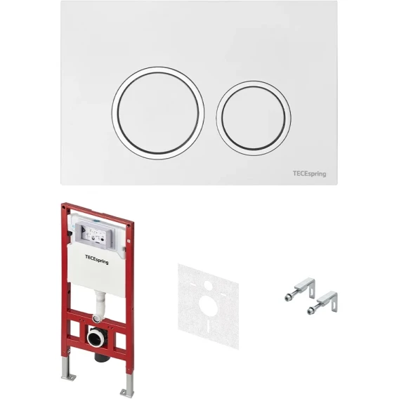 Инсталляция для унитаза Tece TECEspring R S401103 с кнопкой смыва, белый глянец/хром/белый глянец