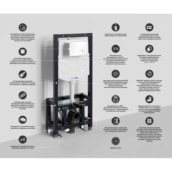 Инсталляция для унитаза WasserKRAFT Dill 61 61TLT.010.ME.WH02 с кнопкой смыва, белый