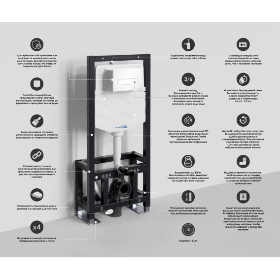 Инсталляция для унитаза WasserKRAFT Dill 61 61TLT.010.ME.WH03 с кнопкой смыва, белый