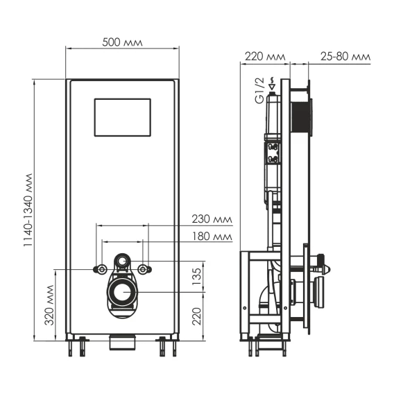 Инсталляция для унитаза WasserKRAFT Glan 66 66TLT.010.ME.BL.WH02 с кнопкой смыва, белый