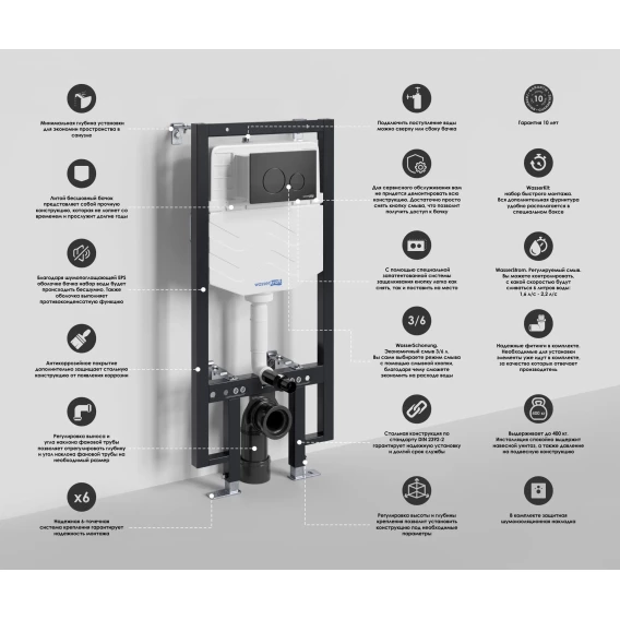 Инсталляция для унитаза WasserKRAFT Vils 56 56TLT.010.ME.MB02 с кнопкой смыва, черный матовый