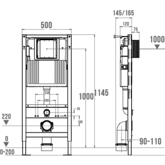 Инсталляция для унитаза Wonzon & Woghand WW-TI743A-H пневматическая