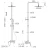 Металлическая розетка, Эксцентрики, Душевой шланг, Душевая лейка, Верхний душ, Смеситель, Кронштейн, Штанга душевая