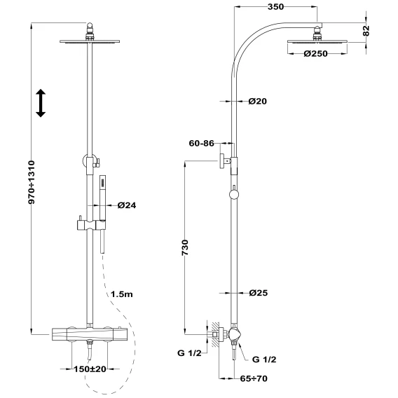 Металлическая розетка, Эксцентрики, Душевой шланг, Душевая лейка, Держатель для душевой лейки, Верхний душ, Кронштейн, Штанга душевая, Термостат