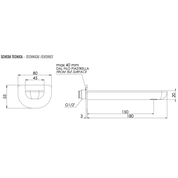 Излив для ванны 150 мм Remer Infinity 91IXV