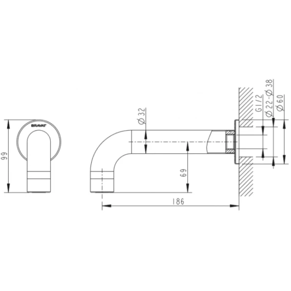 Излив для ванны 186 мм Bravat Built-in FS101C-RUS