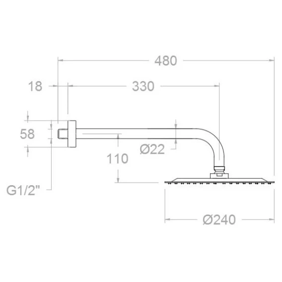 Диаметр верхнего душа 24 см