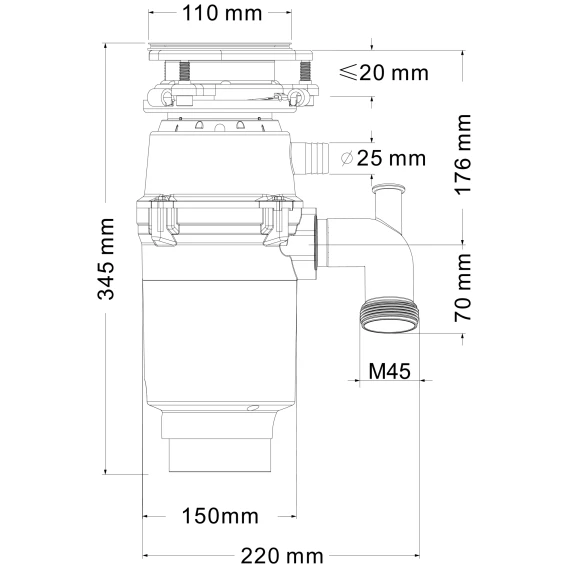 - Мощность двигателя: 475 Вт — оптимальный уровень для базовой утилизации пищевых отходов в быту