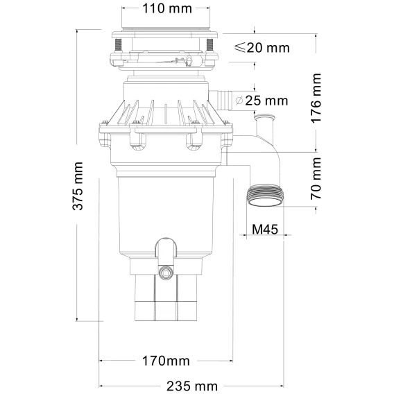 • Тип устройства: измельчитель пищевых отходов для кухонной мойки
