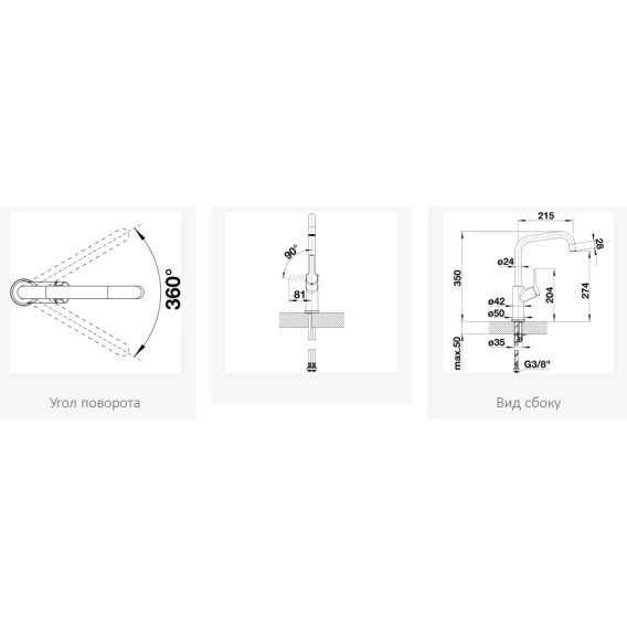 • Высокий излив облегчает наполнение высоких кастрюль и ваз