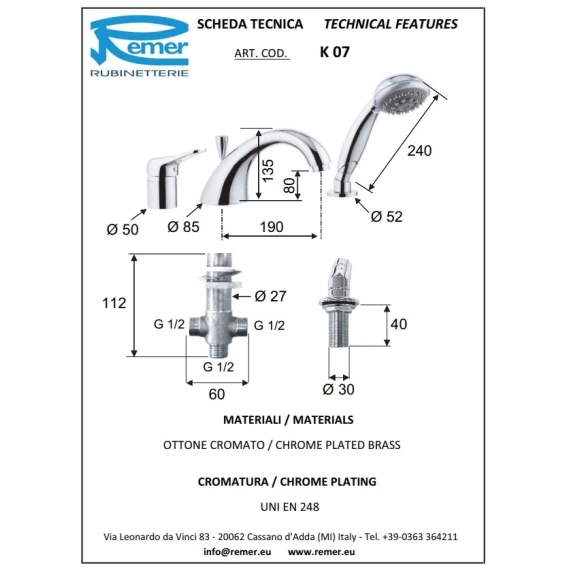 Крепление, Аэратор, Гибкая подводка, Душевой шланг, Душевая лейка