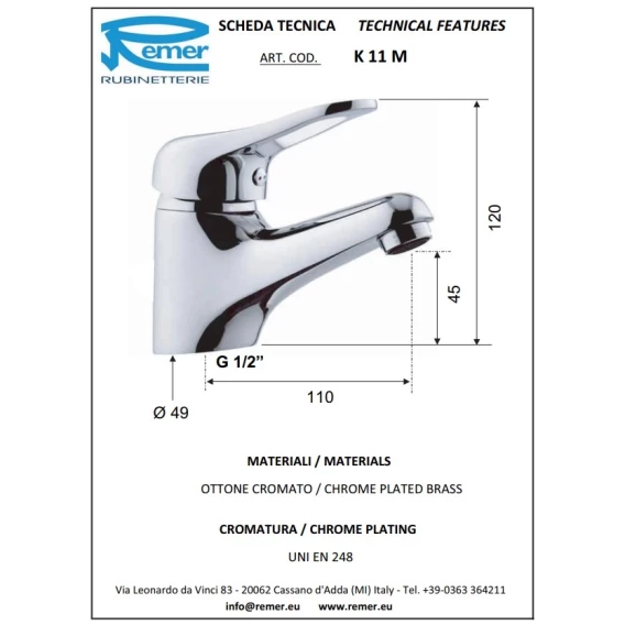 Кран для холодной воды без донного клапана Remer Kiss K11M