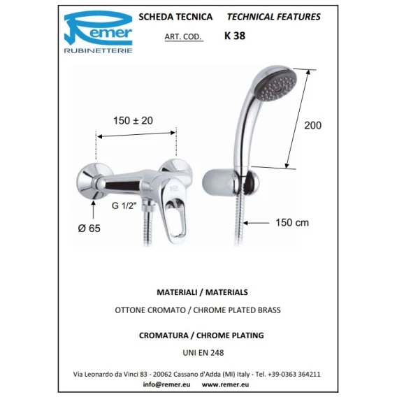 Металлическая розетка, Эксцентрики, Душевой шланг, Душевая лейка, Держатель для душевой лейки