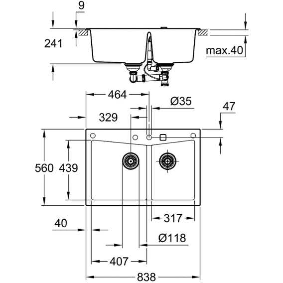 • отверстие (монтаж под столешницу): 757 x 437 мм