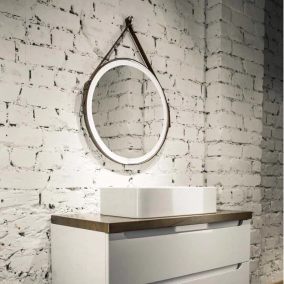 Зеркало с LED-подсветкой изготовлено из влагостойкого зеркального полотна высшего качества. Рама зеркала выполнена из натуральной кожи коричневого цвета. Стильная оправа придаёт зеркалу современный вид и будей гармонично дополнять интерьер. Данная модель оснащена ИК-сенсором (датчик на движение). Выключатель срабатывает на взмах руки на рассоянии 5 см. Экологически чистый продукт выполненный по стандартам ЕС.