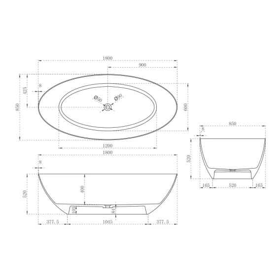 Карбоновая ванна Abber Karbon AK9002-1.8 180x85 см, отдельностоящая, карбон