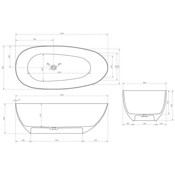 Карбоновая ванна Abber Karbon AK9011-1.7 170x80 см, отдельностоящая, карбон