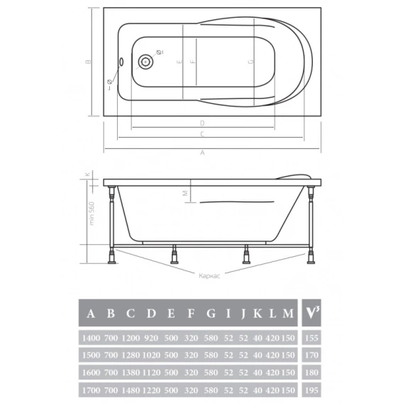 Акриловая ванна 160x70x40 см Alpen Karmenta AVP0003