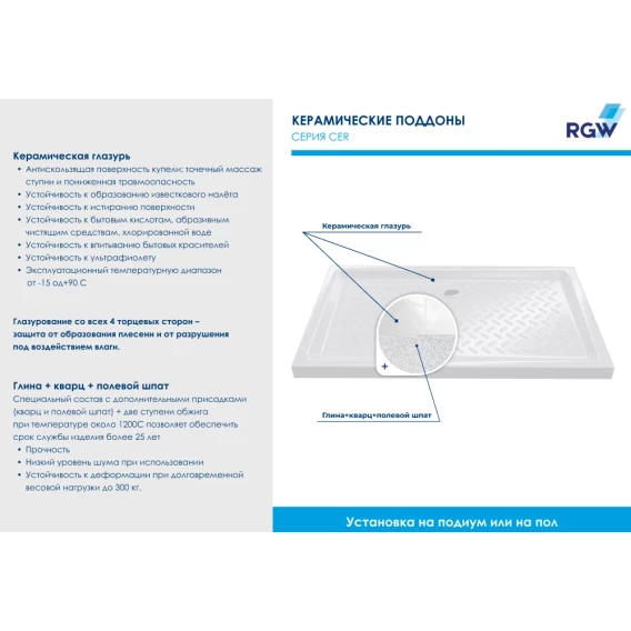Керамический поддон 100x80 см RGW CER CR-108 19170380-01