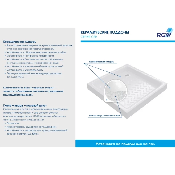 Керамический поддон 90x90 см RGW CER CR-099 19170199-01