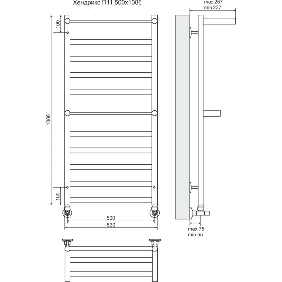 Полотенцесушитель водяной 1086x530 подключение нижнее Terminus Хендрикс+ П11