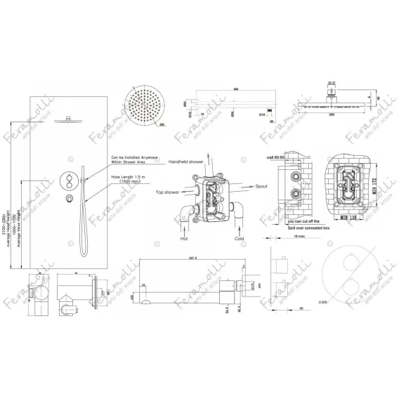 Душевой комплект 300 мм Feramolli Termostato CL726-12