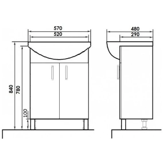 Механизм доводчика, Полочка, Ручки, Ножки, Тумба под раковину, Раковина