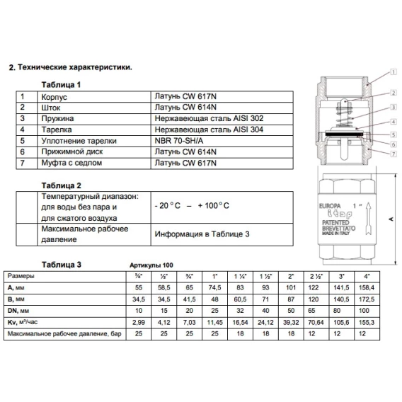 Клапан обратный пружинный с металлическим затвором ITAP Europa муфтовый предназначен для предотвращения обратного тока жидкости или газов в пределах допустимых значений по температуре и давлению