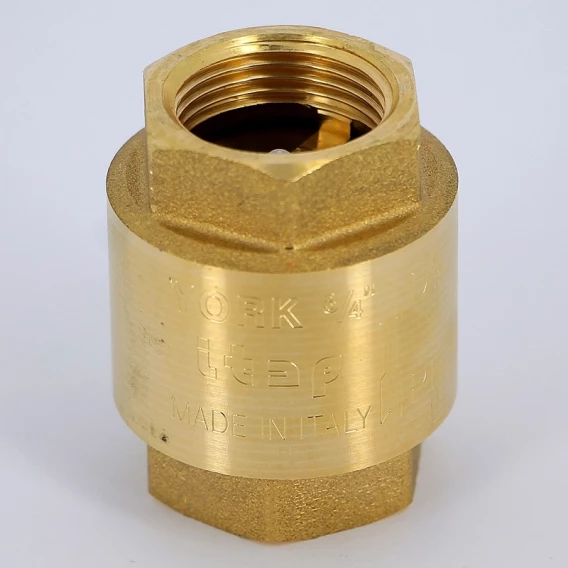 Клапан обратный пружинный муфтовый YORK с пластиковым седлом предназначен для предотвращения обратного тока жидкости или газов в пределах допустимых значений по температуре и давлению