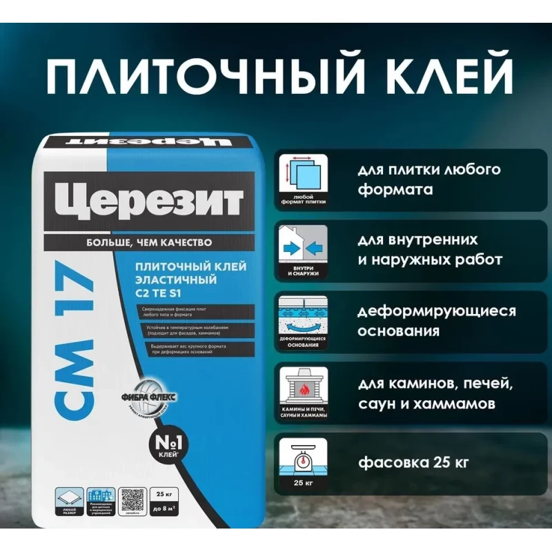 Клей Церезит CM17/25кг Плиточный клей для крупноформатного керамогранита