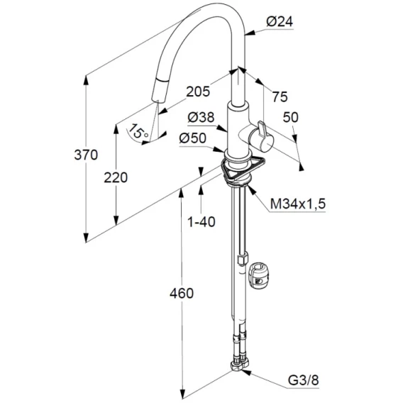 Высота излива 22 см