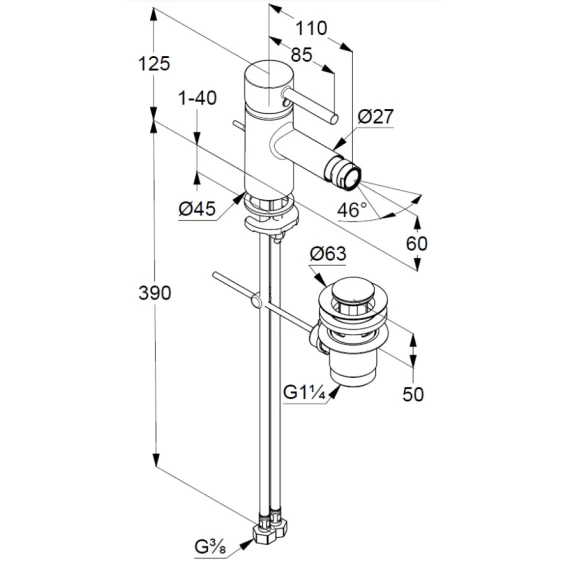Смеситель для биде с донным клапаном Kludi Bozz 385333976