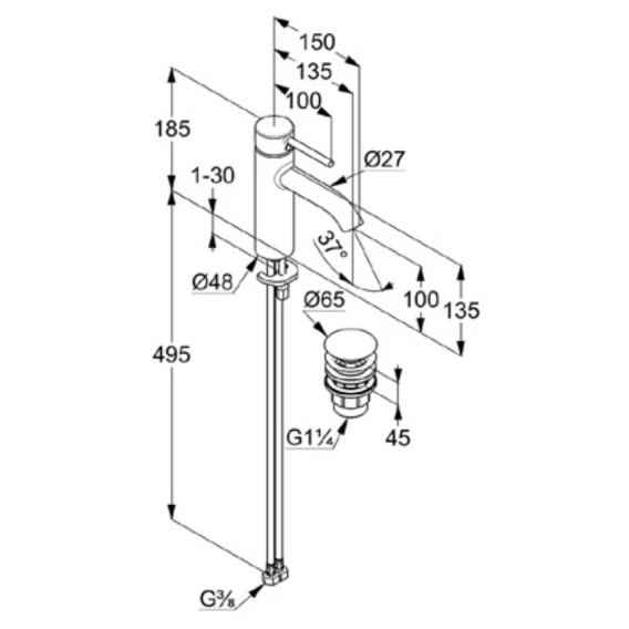 Смеситель для раковины с донным клапаном Kludi Bozz 382880576