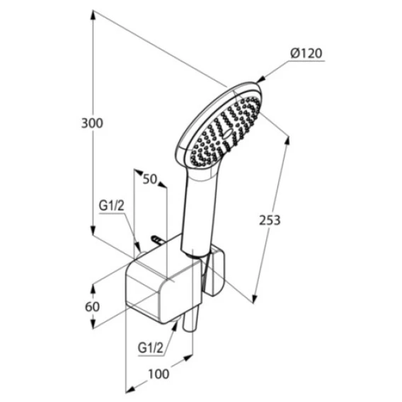 Крепление, Душевой шланг, Душевая лейка, Подключение для душевого шланга с держателем