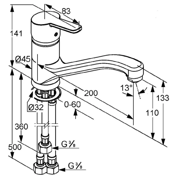 Длина излива 20 см