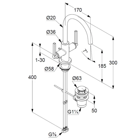 Крепление, Аэратор, Гибкая подводка, Донный клапан