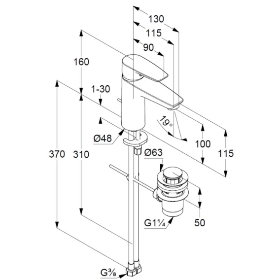Смеситель для раковины с донным клапаном Kludi Pure&Solid 342900575