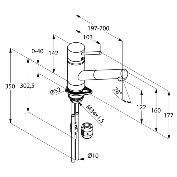 Крепление, Аэратор, Душевой шланг, Душевая лейка, Жесткая подводка