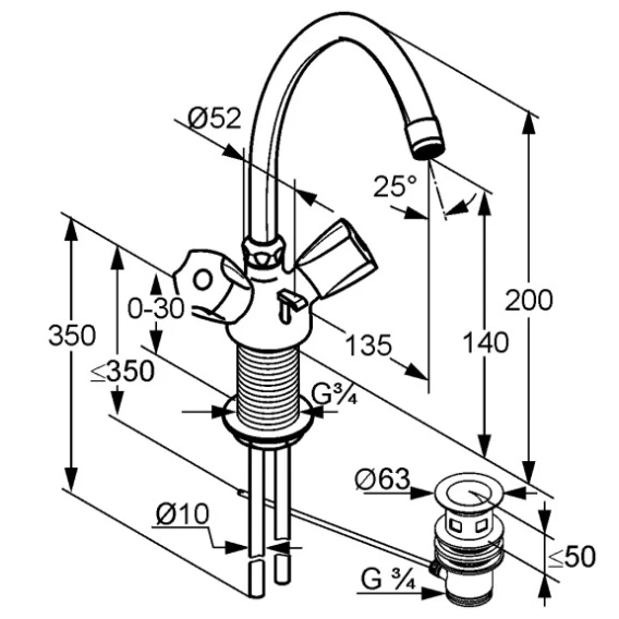 Крепление, Аэратор, Донный клапан, Жесткая подводка