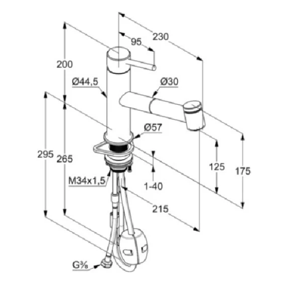 Крепление, Аэратор, Гибкая подводка, Душевой шланг, Душевая лейка