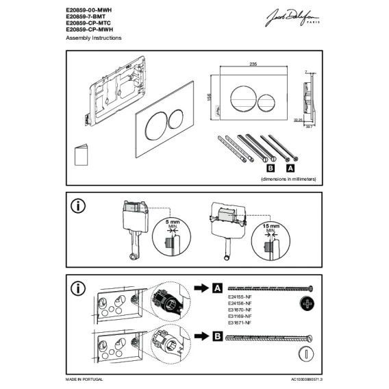 Кнопка смыва Jacob Delafon E20859-00-MWH для инсталляции, белый матовый/белый глянец