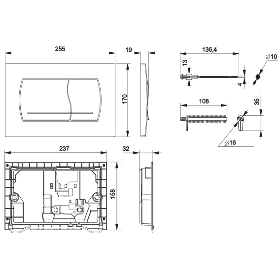 Кнопка смыва Roca Active 52B 8901150B1 для инсталляции, хром